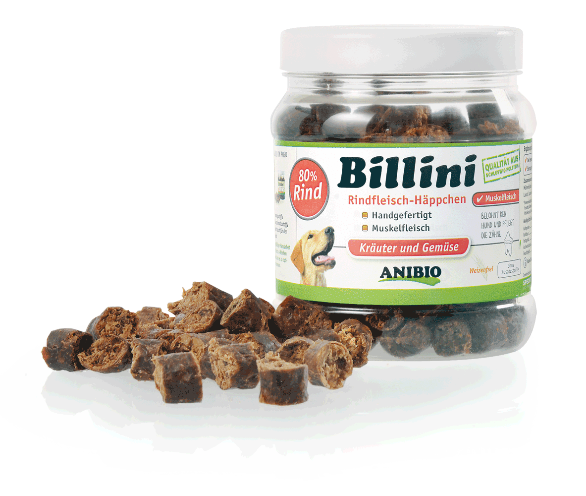ANIBIO Billini werden in sorgfältiger Handarbeit hergestellt und bis zu 4 Wochen luftgetrocknet. Sie sind in ihrer Art einzigartig und der gesunde Kauspaß für zwischendurch. ANIBIO Billini eignen sich optimal für den allergischen Hund.