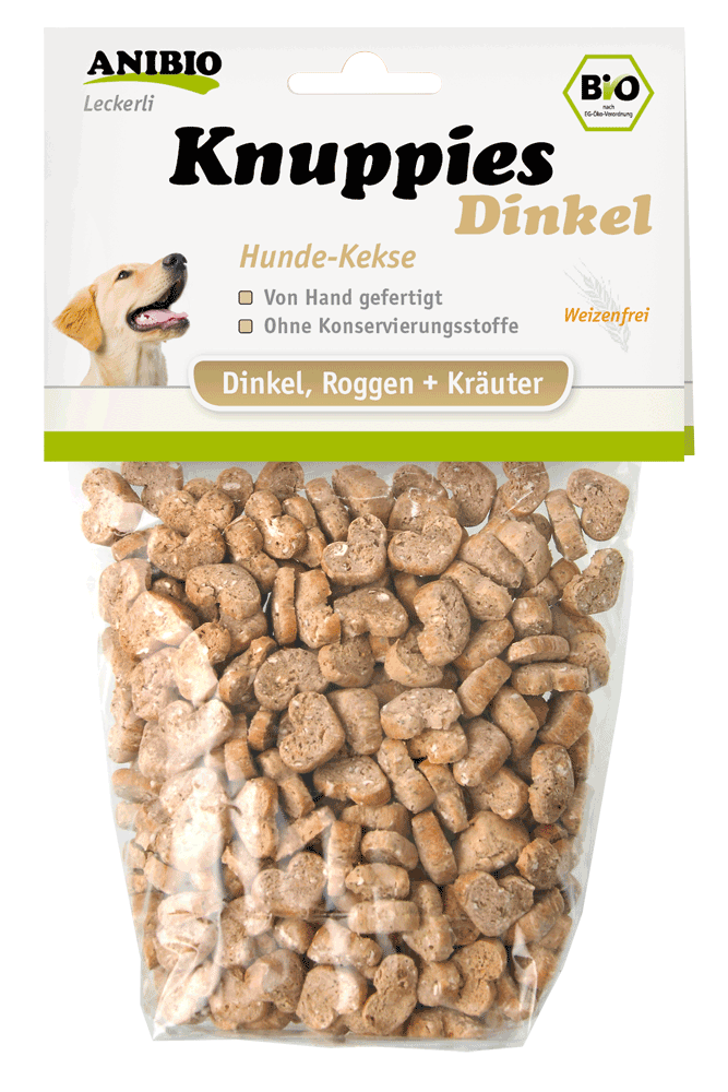 ANIBIO Knuppies sind klein, knusprig und die gesunde Alternative für alle, die auch bei der Belohnung Ihres Hundes auf die optimale Zusammensetzung achten. Sie sind ohne Zugabe von Zucker, Salz, Weizen, Konservierungsstoffe und -Farb- und Geschmacksstoffe hergestellt. ANIBIO Knuppies = 100% Natur.
