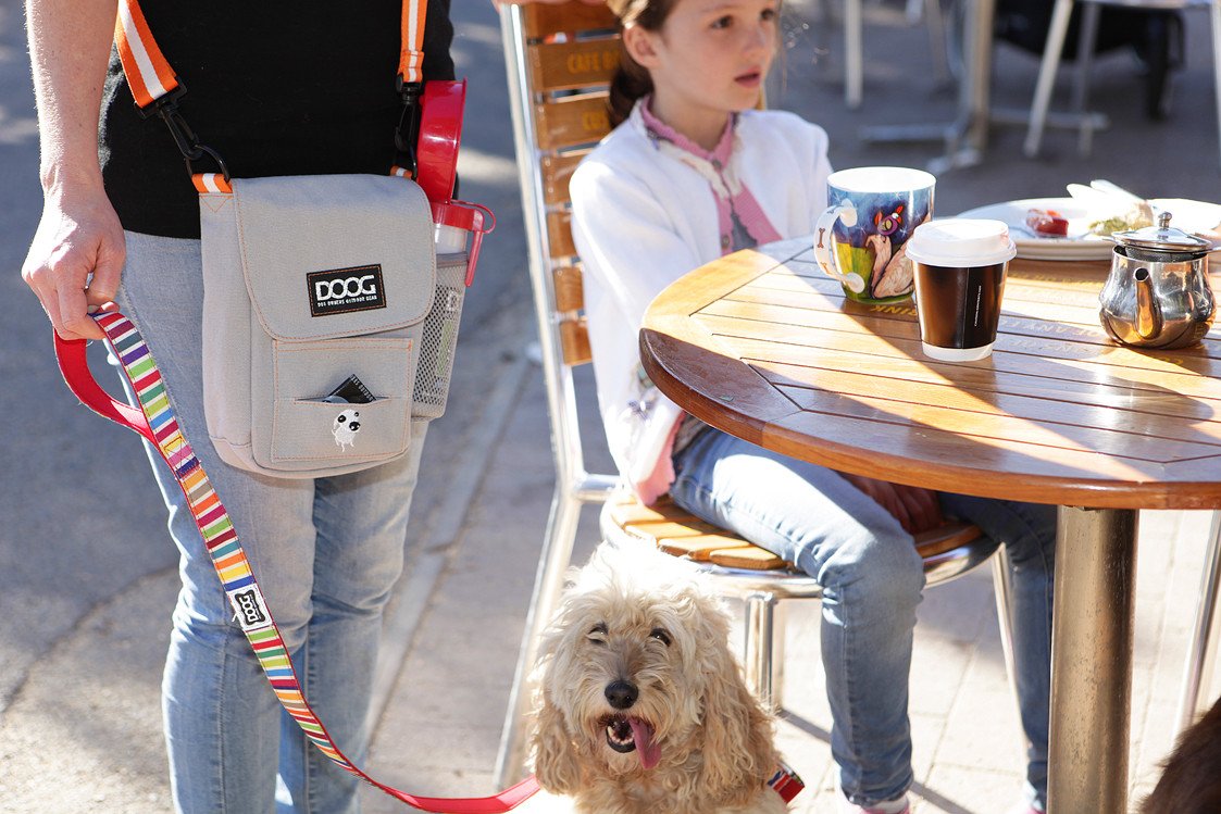 Diese praktische Umhängetasche ist das perfekte Accessoire für den Spaziergang mit dem Hund.