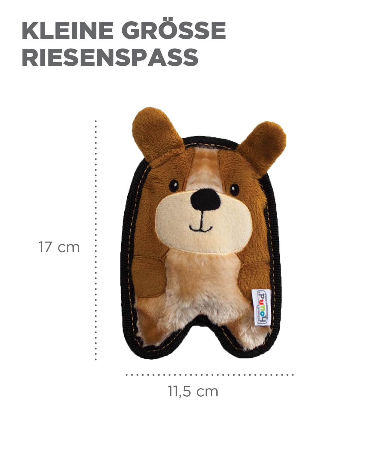 - starke Bindung und eine Innenschicht aus robustem material (k-9 tuff guard) für längeres Spielen im Vergleich zu herkömmlichen Plüschtieren