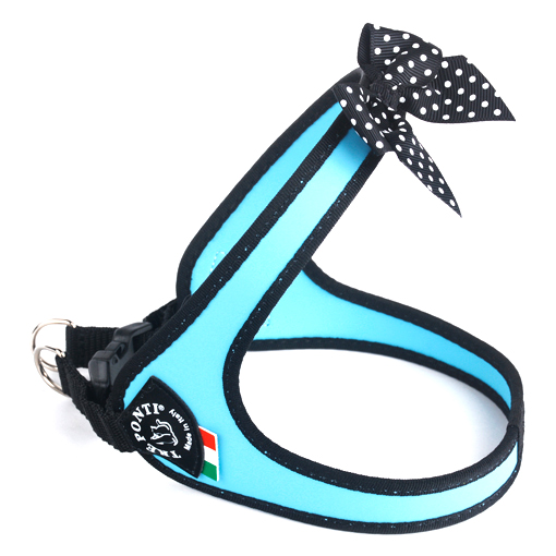 Startseite » Hund » Geschirre » Tre Ponti Geschirre » Easy Fit Fashion - POLKA DOT BOW - Click-Verschluss - Hellblau - Schwarzer Rand - Gr. 1