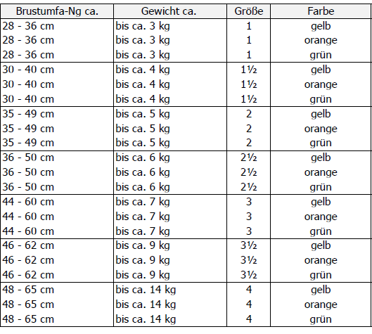 Um Unfälle zu vermeiden, verwenden Sie ausschließlich Produkte in der passenden Größe und Art für Ihr Haustier.