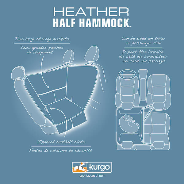 Die Heather Half Hammock Sitzabdeckung eignet sich optimal, um eine Hälfte des Rücksitzes zu schonen und Platz für einen weiteren Fahrgast zu bieten. Sie wird an vier Kopfstützen befestigt und erzeugt eine gewisse Barriere, damit Ihr Hund auf seinem Platz bleibt.