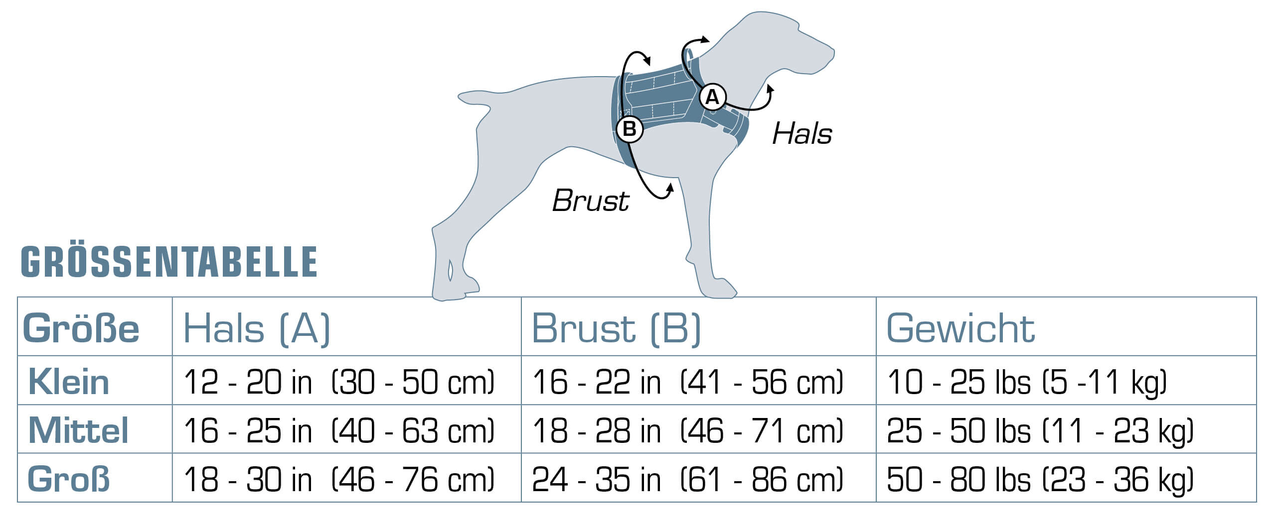 Hunde-Gewicht | 2-5 kg | 5-11 kg | 11-23 kg | 23-36 kg | 36-50 kg |