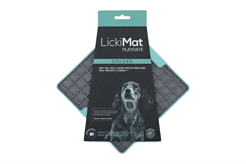 Die LickiMat wurde entwickelt, dem Hund die Langeweile zu nehmen, während er alleine ist. Sie beruhigt ihn beim Abschlecken seiner Lieblingssnacks oder anderen Leckereien. Die LickiMat lässt sich sehr gut mit artgerechten Pasten für Hunde bestreichen. Sie dient zur langsamen Fütterung und beruhigt gleichzeitig den Hund. LickiMat stimuliert die Speichelproduktion die zu einer verbesserten Verdauung führt. Durch die Oberflächenbeschaffenheit fördert die LickiMat den frischen Atem des Hundes, da sie die Zunge beim intensieven Abschlecken reinigt. Die LickiMat Deluxe bietet alle Vorteile der LickiMat Original, jedoch mit einem festen Rahmen für mehr Komfort.