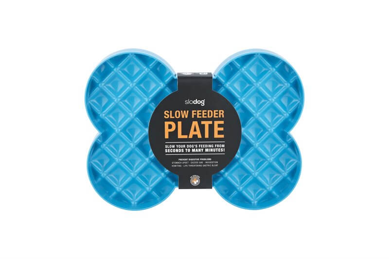 Die LickiMat - Slodog verhindert das schnelle verschlingen der Nahrung.