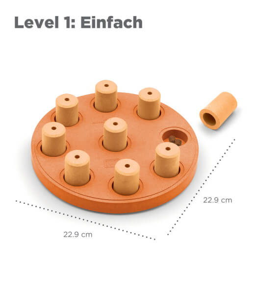 Herausforderung Level 1: Dieses Hundespiel der Stufe 1 ist ideal, um Ihren Hund auf Trainingsspiele vorzubereiten. Es ist eine spielerische Abwechslung für Ihren Hund und bereitet Welpen auf aufregende und herausfordernde Aufgaben vor.