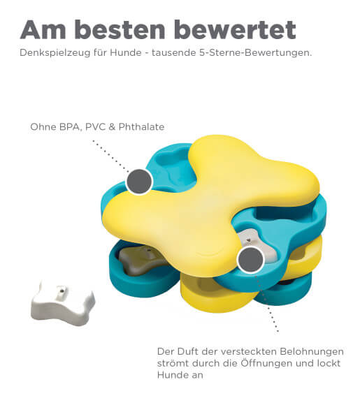 Spass bei der Fütterung: Mit 12 Leckerbissenfächern in diesem Hundespiel ist der Dog Tornado von Nina Ottosson eine clevere und unterhaltsame Wahl für die Mahlzeiten, da es mit dem Lieblingsnass- oder Trockenfutter Ihres Hundes befüllt werden kann.