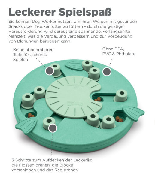 Herausforderung: Nina Ottossons Dog Worker ist die ultimative Übung zum Lernen und Spielen und kann mit Leckereien gefüllt werden, um das Gehirn Ihres Hundes zu trainieren und die Bindung zwischen Ihnen und Ihrem Hund durch interaktives Spielen zu stärken. Beobachten Sie Ihren Hund, wie er ein Puzzle-Meister werden kann!