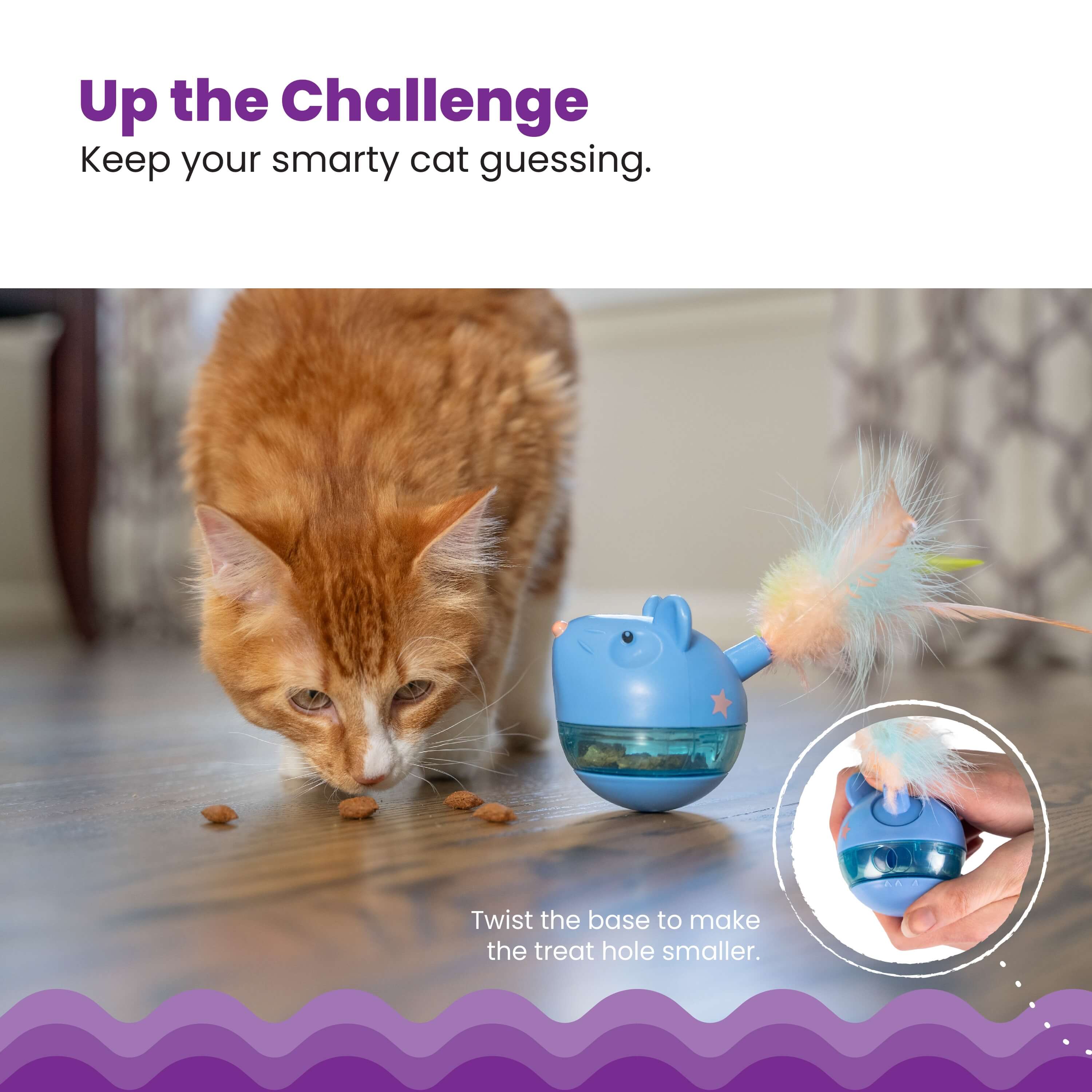 Beschäftigen Sie neugierige Katzen mit dem Hunt 'N Swat Treat Tumbler von Nina Ottosson. Das Hunt 'N Swat wackelt und rollt, während Ihre Katze danach tatzt und schlägt. Die unvorhersehbaren Bewegungen halten die Aufmerksamkeit der Katze gefesselt.