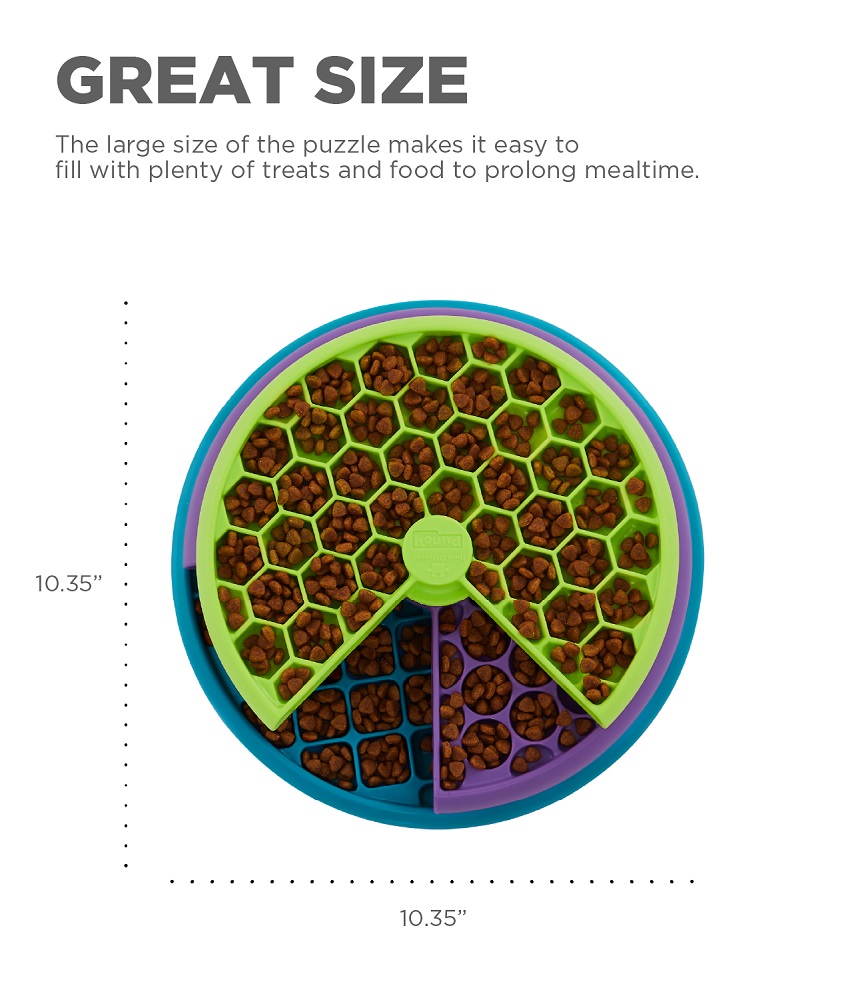 Mit über 100 Fächern für Leckereien wird dieses Hundepuzzlespielzeug Hunde beschäftigt und beschäftigt halten. Es bietet sogar genug Platz, um als Slow Feeder verwendet zu werden, um die Mahlzeiten zu verlängern und Ihren Hund zu ermutigen, langsamer und gesünder zu fressen. Perfekt für Hundetrockenfutter, Knabbereien, Leckerli, Nassfutter und Rohkost. Es ist einfach, es zu verschmieren, indem Sie die drei Schichten auseinander nehmen und jede Schicht mit dem Lieblingsfutter Ihres Hundes füllen.