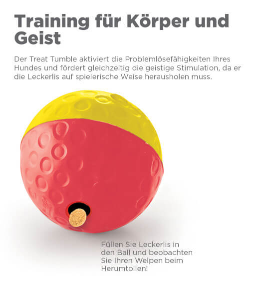 Beschäftigung: Mit dem Nina Ottosson Treat Tumble können Sie Ihren Hund perfekt beschäftigen und trainieren. Füllen Sie diesen Leckerbissenball einfach mit den Lieblingsleckereien und / oder Knabbereien Ihres Hundes und geben Sie den Ball Ihrem Hund, damit Sie ihm beim Spielen beobachten können und herausfinden, wie er die Leckereien hinausbekommt werden.