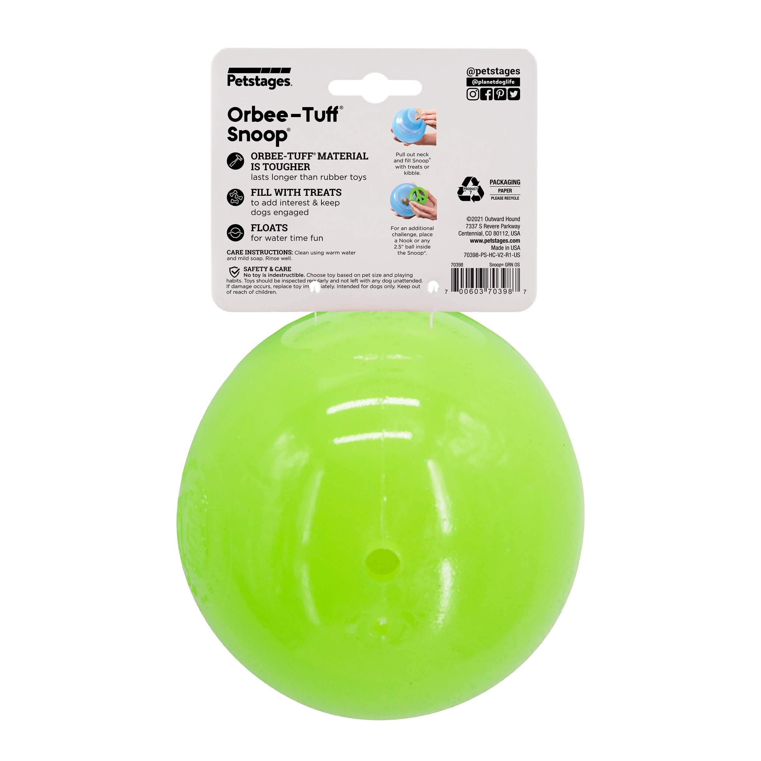Mit Leckereien gefüllt, stürzt sich Ihr Hund auf diesen Snackball und arbeitet mit seiner Nase und seinen Pfoten, um die Snacks zu erhalten.Dieses interaktive Spielzeug bietet stundenlange, gehirnstimulierende Unterhaltung für Hunde jeder Größe. Sie können den Snoop auch mit anderen Planet Dog Bällen der Grösse 6,5 cm zusammenfügen, das verdoppelt den Spaß.