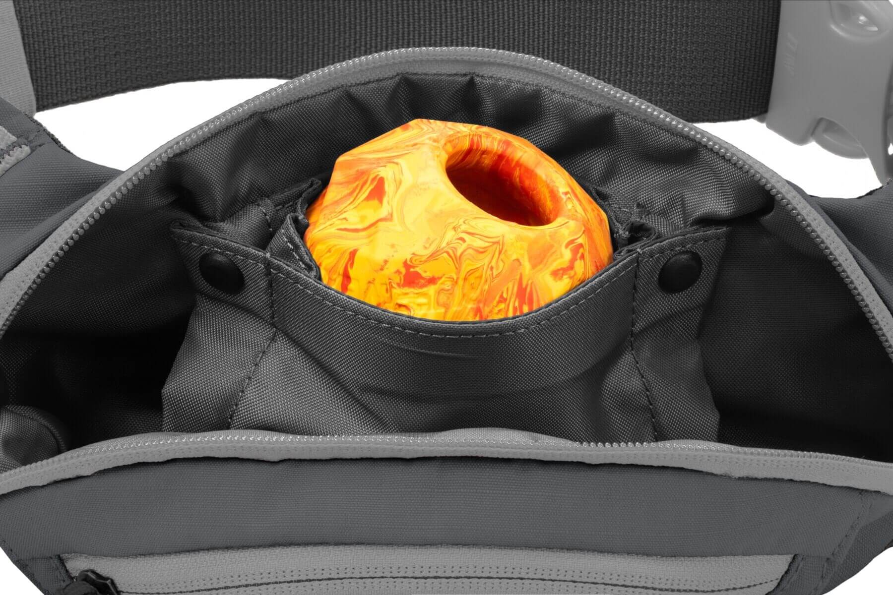 Das bequeme, körpernahe Design ist für die Menschen gemacht, bei den Details wurde an die Hunde gedacht: Ein separates Schmutz-Fach im Inneren trennt Leckerlis oder verschmutzte Spielzeuge vom restlichen Inhalt, Kotbeutel lassen sich in der Außentasche aus Mesh verstauen, und es ist ausreichend Platz für Leine, faltbaren Napf und andere kleine Dinge. Ein unauffälliges Fach bietet schnellen Zugriff auf dein Smartphone, damit du keinen Schnappschuss mit deinem liebsten Trailgefährten verpasst!