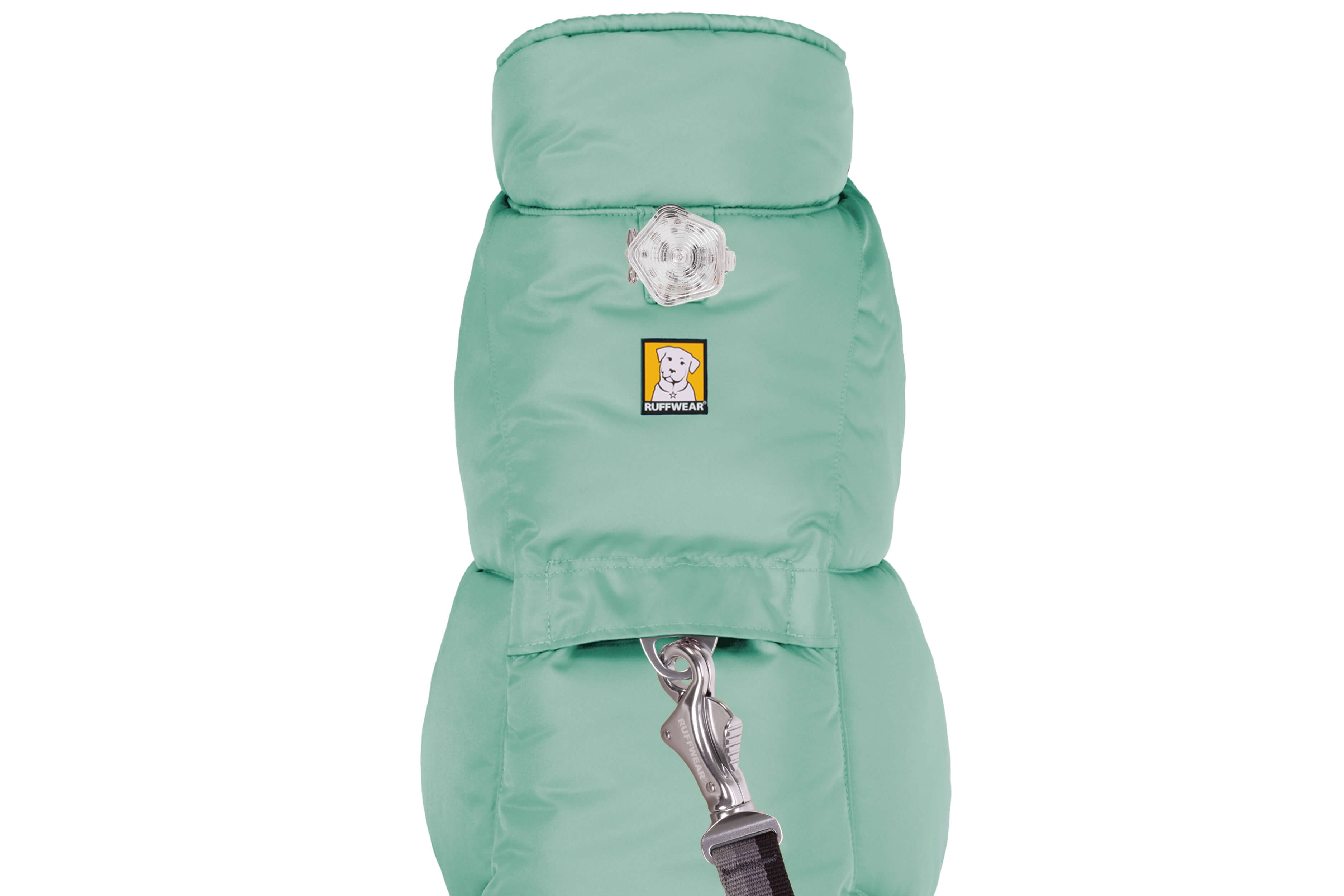 Die wetterbeständige, verstaubare Jacke ist mit recyceltem Polyester isoliert. Sie lässt sich schnell in einen integrierten Beutel verstauen, während der Leinenanschluss am Rücken ermöglicht, dass die Jacke über den meisten Geschirren getragen werden kann.