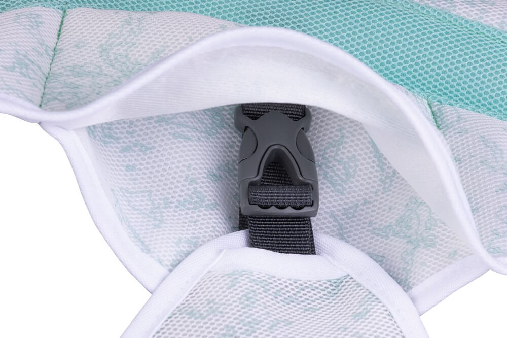 In warmen Klimazonen bleiben Hunde normalerweise kühl, indem sie während der Hitze des Tages Schatten suchen und sich erst bei kühleren Temperaturen wieder bewegen. Der Swamp Cooler bietet die Möglichkeit, jeden Hund vor Überhitzung zu schützen. Um den Swamp Cooler zu aktivieren, legen Sie ihn in kaltes Wasser, wringen ihn aus und legen ihn auf Ihren Hund. Das helle Gewebe reflektiert die Sonnenstrahlung, während die Verdunstungskälte dem Hund die überschüssige Wärme entzieht.